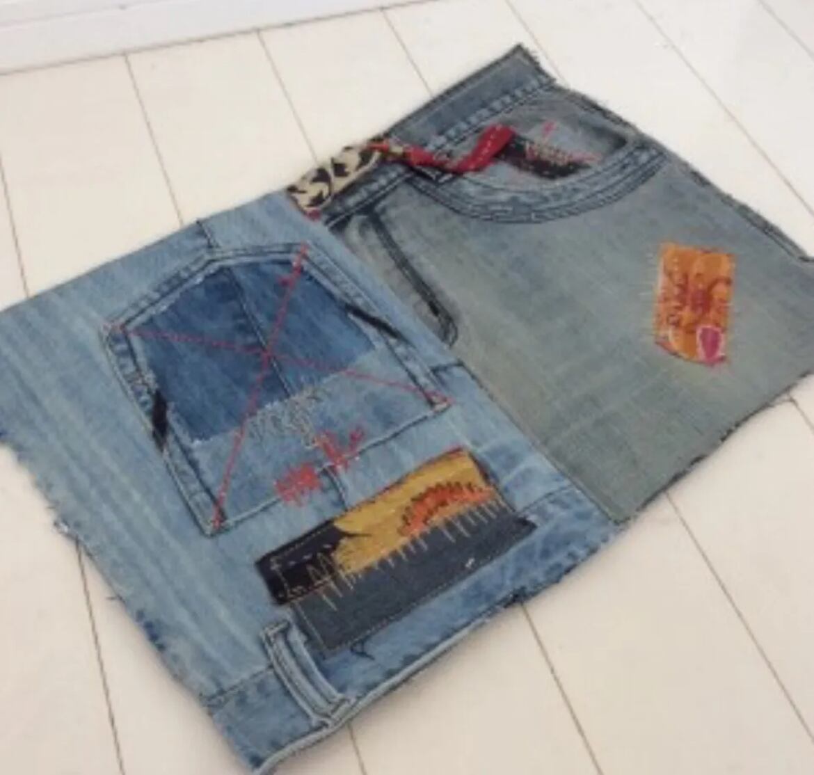 ※デニムリメイクし、使用しているので、シミ、ほつれ、破れ等があります。画像でご確認宜しくお願い致します。